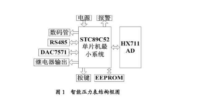 氣體壓力是工業(yè)生產(chǎn)過程中重要參數(shù)之一,智能氣體壓力表在工業(yè)過程控制中具有 非常重要的作用。為保證生產(chǎn)和設(shè)備安全運(yùn)行,提出了基于STC89C52單片機(jī)的智能氣體壓力表設(shè)計(jì)方案,釆用24位專用AD芯片HX711對10N1600A-T壓力傳感器的壓力數(shù)據(jù)進(jìn)行 模數(shù)轉(zhuǎn)換并送至STC89C52單片機(jī),可檢測0-1600kpa氣體壓力值。