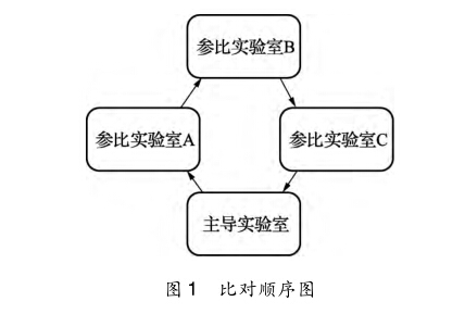 先由主導(dǎo)實(shí)驗(yàn)室進(jìn)行檢定,然后按順序由各 參比實(shí)驗(yàn)室進(jìn)行檢定,最后由主導(dǎo)實(shí)驗(yàn)室再次檢 定,如圖1所示。