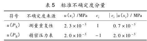 輸入量Px的標(biāo)準(zhǔn)不確定度來源主要是被測精 密壓力表的測量重復(fù)性,可通過連續(xù)測量得到, 用A類方法進(jìn)行評(píng)定。