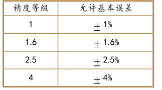壓力表的精度等級對應(yīng)允差關(guān) 系如下表: