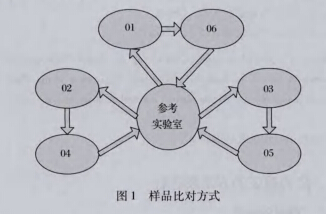 通過綜合考慮項(xiàng)目時(shí)間安排、參加實(shí)驗(yàn)室的地理 位置、控制無效比對及效率等因素,本次驗(yàn)證采用花 _形與星形相結(jié)合的比對方式,6家單位比對示意圖如 圖1所示。參考實(shí)驗(yàn)室按作業(yè)指導(dǎo)書規(guī)定的程序校準(zhǔn) 樣品后,再按圖1所示方式進(jìn)行樣品傳遞,參比實(shí)驗(yàn) 室完成比對后,依照閣1所示,將樣品送至下一參比 實(shí)驗(yàn)室,如果比對過程中出現(xiàn)問題,應(yīng)返回參考實(shí)驗(yàn) 室進(jìn)行復(fù)校。該方式吋將尤效比對控制在比對過程的 某一中間環(huán)節(jié)。