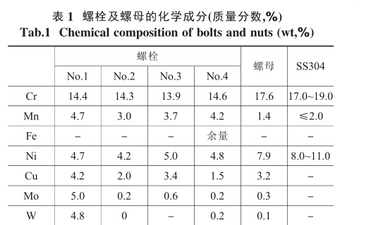 采用直讀光譜儀對(duì)螺栓及螺母進(jìn)行了化學(xué)成分 分析,結(jié)果如表1所示??煽闯?,雖然螺母的化學(xué)成 分基本符合SS304標(biāo)準(zhǔn)材料的要求,但是螺栓螺桿 部分的鉻、鎳含量均低于國(guó)標(biāo)中SS304的要求,錳 含量又高于SS304的要求。這就表明,斷裂的螺栓 為化學(xué)成分不合格螺栓。由于鉻、鎳可以提高鋼基體的電極電位,提高不銹鋼的耐腐蝕能力。同時(shí),鉻、 鎳還可以促進(jìn)在鋼的表面形成一層穩(wěn)定的、完整的與鋼的基體結(jié)合牢固的純化膜,提高不銹鋼的耐腐 蝕性能。因此,這兩種元素是不銹鋼提高耐蝕性能的 關(guān)鍵元素。若不銹鋼中鉻、鎳的含量降低,必定降低 材料的耐腐蝕性。