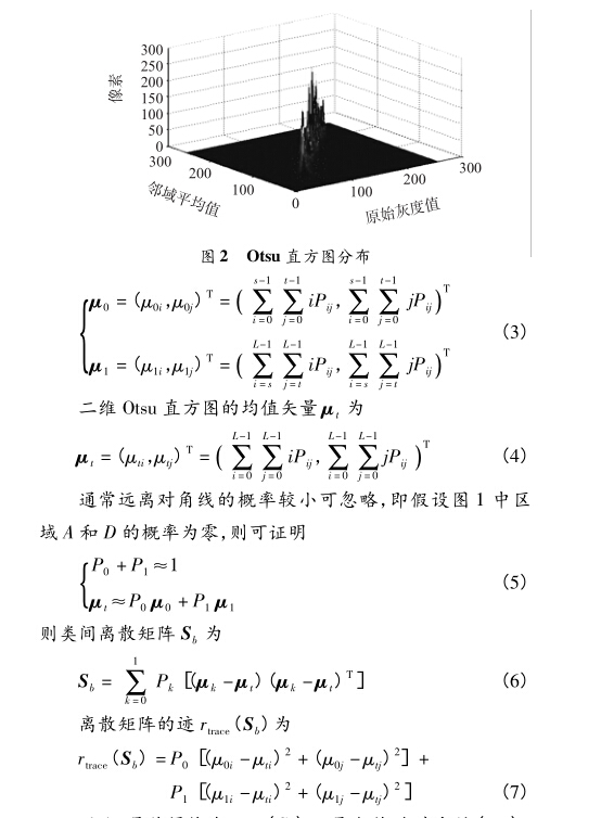 應(yīng)度函數(shù),同時(shí),引入離差平方和法作為傳統(tǒng)二維Otsu算