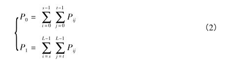 傳統(tǒng)二維Otsu算法針對(duì)目標(biāo)類和背景類分離計(jì)算,當(dāng) 閾值(s,t)使最大類間方差取最大值時(shí),則該閾值組合為 Otsu算法的最優(yōu)閾值。其理論如下所述:
