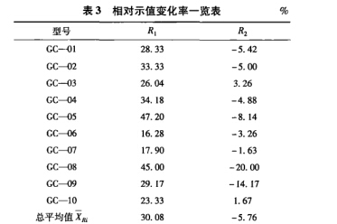 為研究相鄰兩次試驗示值的變化規(guī)律,引入 了相對示值變化率的概念,即相鄰兩次試驗,正、 反行程中壓力表同一點示值變化平均值與最大允 許誤差之比,用百分數(shù)表示,反映相鄰兩次試驗 同一點示值的變化情況。