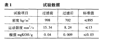 為了驗(yàn)證所設(shè)計(jì)的快接式油污分離接口的過 濾能力,將日常檢測(cè)所更換下來的廢油和通過油污 分離接口進(jìn)行過濾后得到的回收油的一些主要參 數(shù)進(jìn)行了比對(duì)測(cè)試,試驗(yàn)數(shù)據(jù)如表1所示。