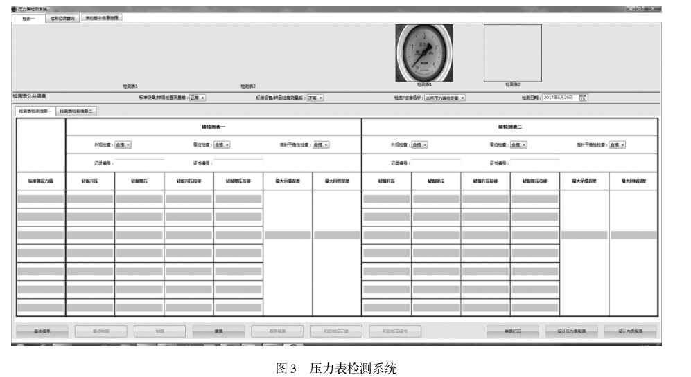 啟動檢定主程序,即圖2中所示的“壓力表檢 測”,登錄后界面如圖3所示。