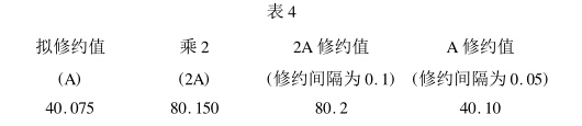計算平均值:(40. 02 + 40. 02 + 40. 02 + 40. 04)/4 = 40. 025 ; (40. 02 + 40. 04 + 40. 04 + 40. 04) / 4 = 40. 035 ; (40. 04 + 40. 04 + 40. 06 + 40. 06)/4 = 40.05 其修約過程如表3所示。