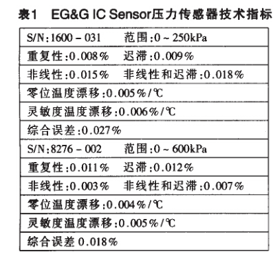 壓力傳感器選用了EGPG IC Sensor 公司的產品,其主要技術指標見表1。