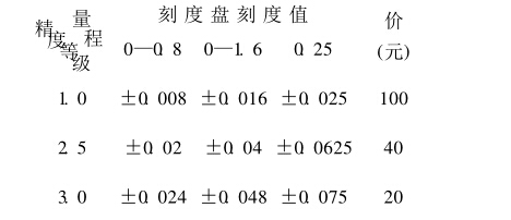 從表中可以看出如選用2 5級(jí)精度表盤 刻度值為0—1 6MPa的壓力表,當(dāng)壓力表指 示介質(zhì)為0 59MPa時(shí)則被測(cè)介質(zhì)實(shí)際壓力 應(yīng)在 0. 55—0. 63MPa 之間。