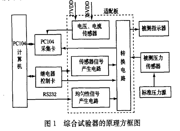 溫度表/壓力表綜合試驗(yàn)器由PC104總線計(jì)算 機(jī)、PC104數(shù)據(jù)采集卡、繼電器控制卡、適配板、電 源、標(biāo)準(zhǔn)壓力源和被測(cè)設(shè)備及接口等部件組成。