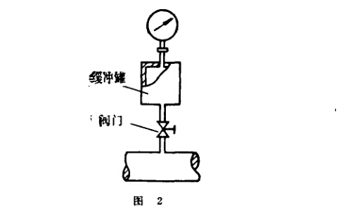 2.測(cè)量有脈沖或沖擊的介質(zhì)壓力時(shí),應(yīng) 加緩沖罐(見(jiàn)圖2),以緩解由于被測(cè)介質(zhì)急劇變化給壓力表帶來(lái)的震動(dòng)。