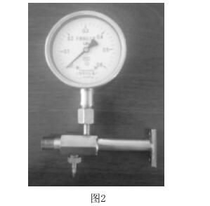 對于此不足,設計了一個新型壓力表組件,能減少組件的接口,有效 的保證壓力表組件的高密封性能,外形如圖2。