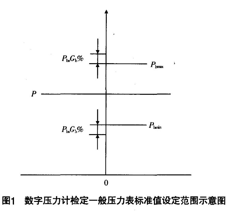 用數(shù)字壓力計(jì)檢定一般壓力表時(shí)由于壓力表允 許誤差較大,設(shè)定標(biāo)準(zhǔn)值時(shí)可以在一定范圍內(nèi),如圖1 所示。