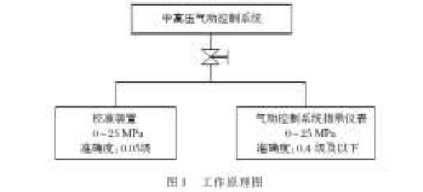 用現(xiàn)場校準(zhǔn)的方法,解決中高壓氣動控制系統(tǒng)中禁油禁水壓力儀表的校準(zhǔn)工作,同時實(shí)現(xiàn)對中高壓控制系統(tǒng)的壓力特 性進(jìn)行檢測。