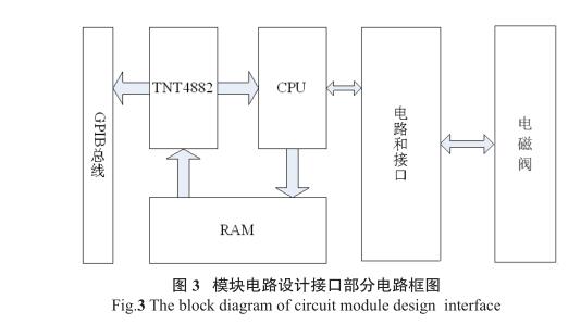 智能壓力儀表自動標(biāo)定裝置系統(tǒng)的通訊模塊和管路 控制模塊是基于單片機(jī)分別進(jìn)行設(shè)計(jì)的。其中與系統(tǒng)通過 GPIB總線通訊部分的框圖如圖3所示。