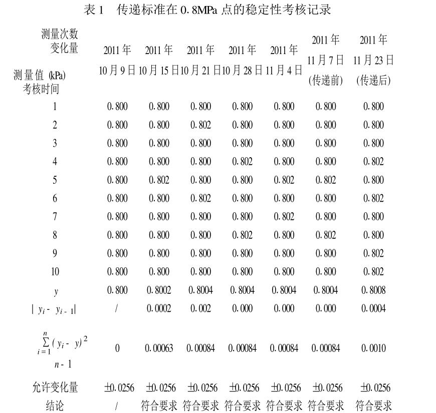 按照J(rèn)JG52 - 199《彈簧管式一般壓力表、壓力真空 表和真空表》檢定規(guī)程表1中后續(xù)檢定和本次比對實(shí)施 方案的具體要求,對提供的傳遞標(biāo)準(zhǔn)(一般壓力表)進(jìn)行 檢定。委托單位為“廣元市計(jì)量檢定測試所”并完成 0. 8kPa指定點(diǎn)示值誤差測量結(jié)果的不確定度評定。