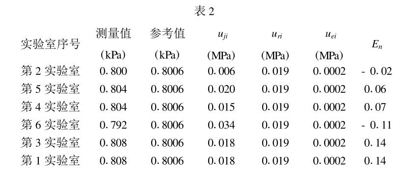 根據(jù)本次實(shí)施方案規(guī)定:本次比對以主導(dǎo)實(shí)驗(yàn)室的 量值作為參考值(主導(dǎo)實(shí)驗(yàn)室0. 01活塞式壓力計(jì)標(biāo)準(zhǔn)裝 置2011年8月下旬送上級計(jì)量機(jī)構(gòu)檢定,準(zhǔn)確度高、穩(wěn) 定性較好)Yri = 0. 8006 , ud = 0. 019 MPa , uei = 0. 0002 MPa 5.2比對結(jié)果的評價(jià)