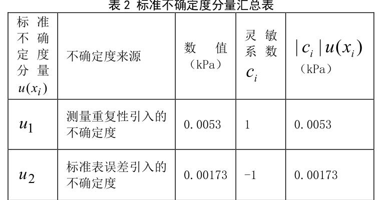 (2)壓力表示值誤差估讀的影響:檢定規(guī)程要求對被 檢表估讀至分度值的1/5,而被檢表在重復(fù)性測量中,估讀 帶來的不確定度己經(jīng)包含在內(nèi),所以不再考慮這部分的影響;